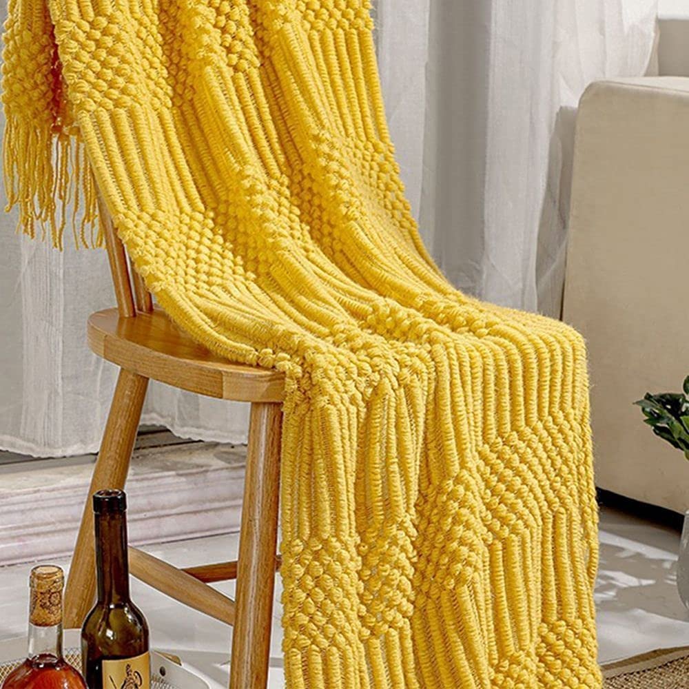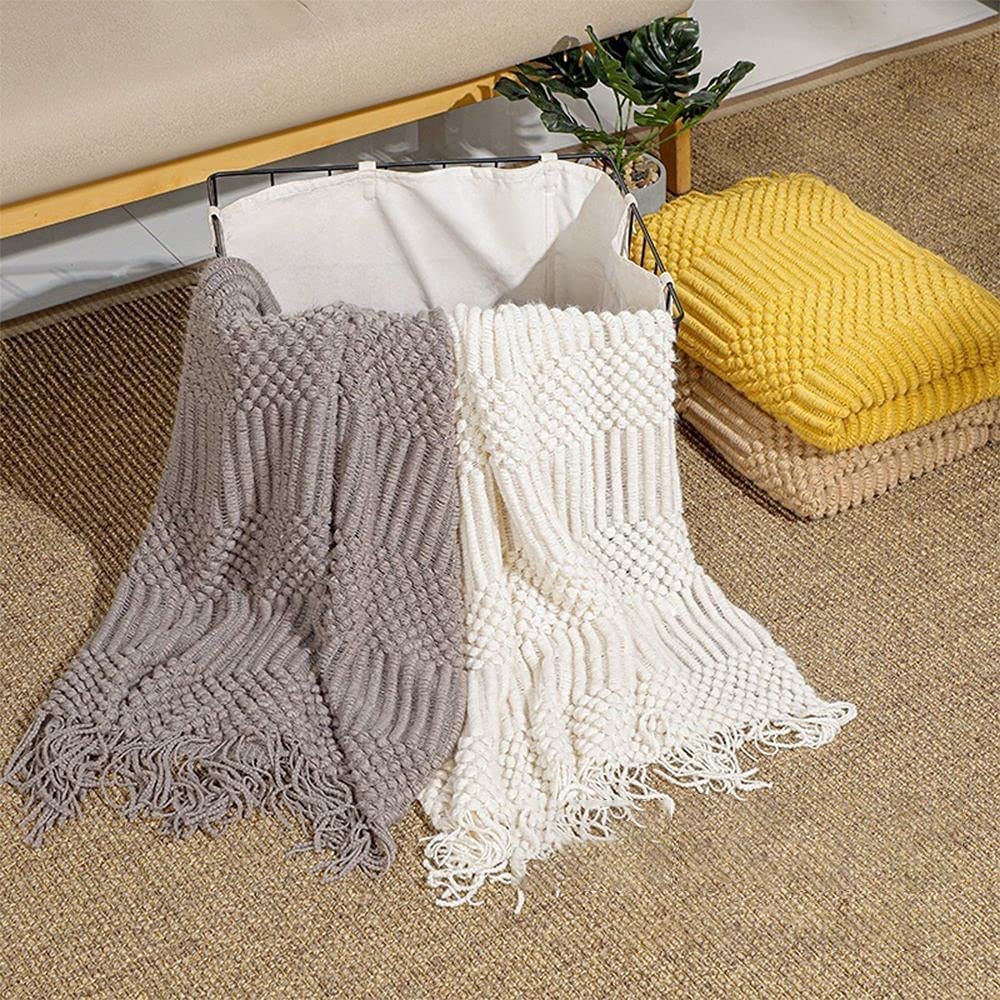 - CLASSIC DESIGN: Simple and elegant solid color tassel blanket, very classic and never outdated. Can easily match any style. The design with tassels and geometric patterns gives it a unique modern appearance and Nordic style decorative effect.