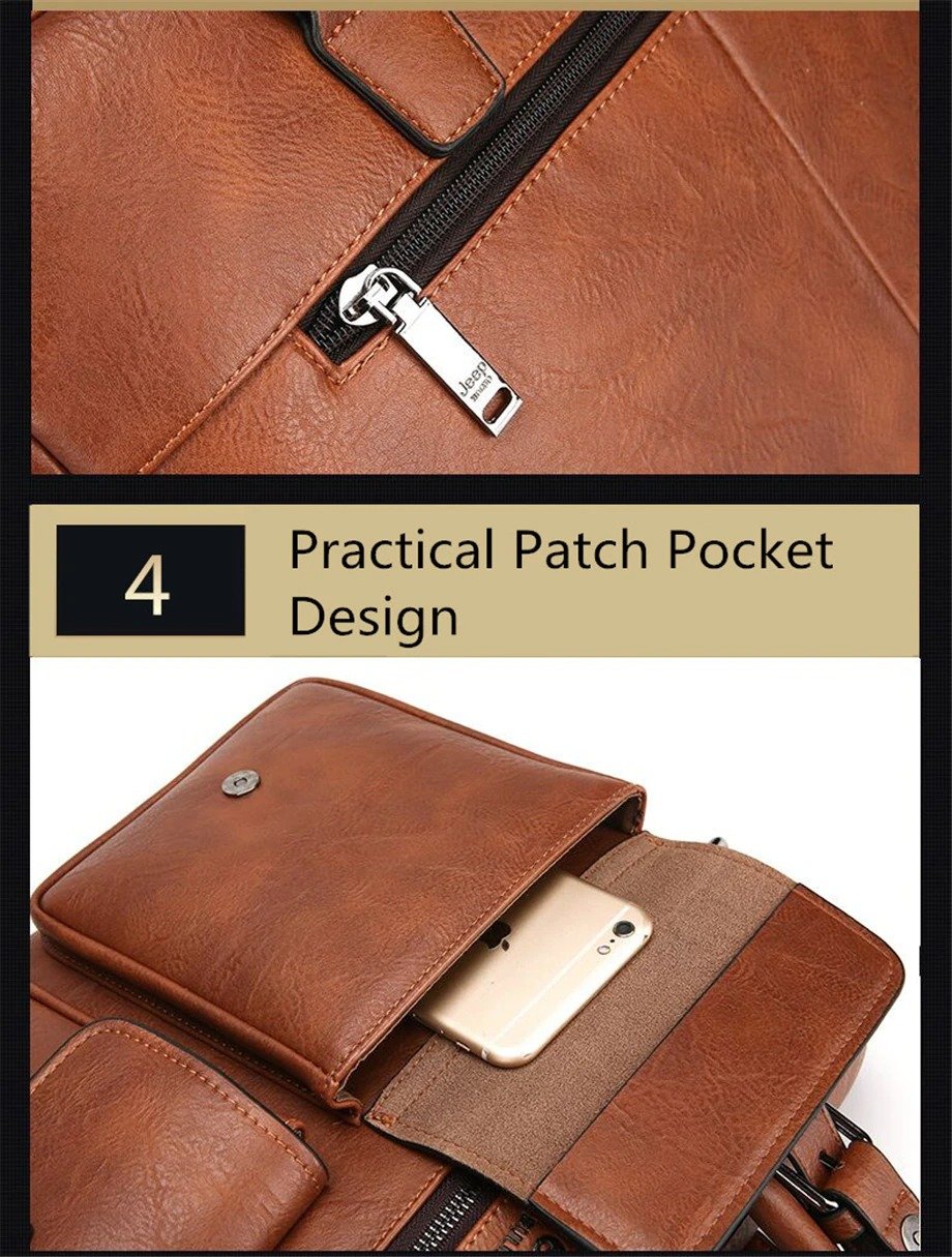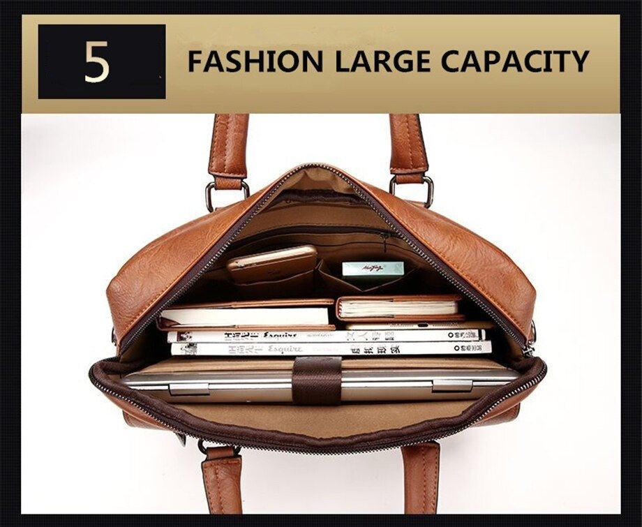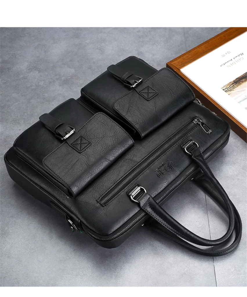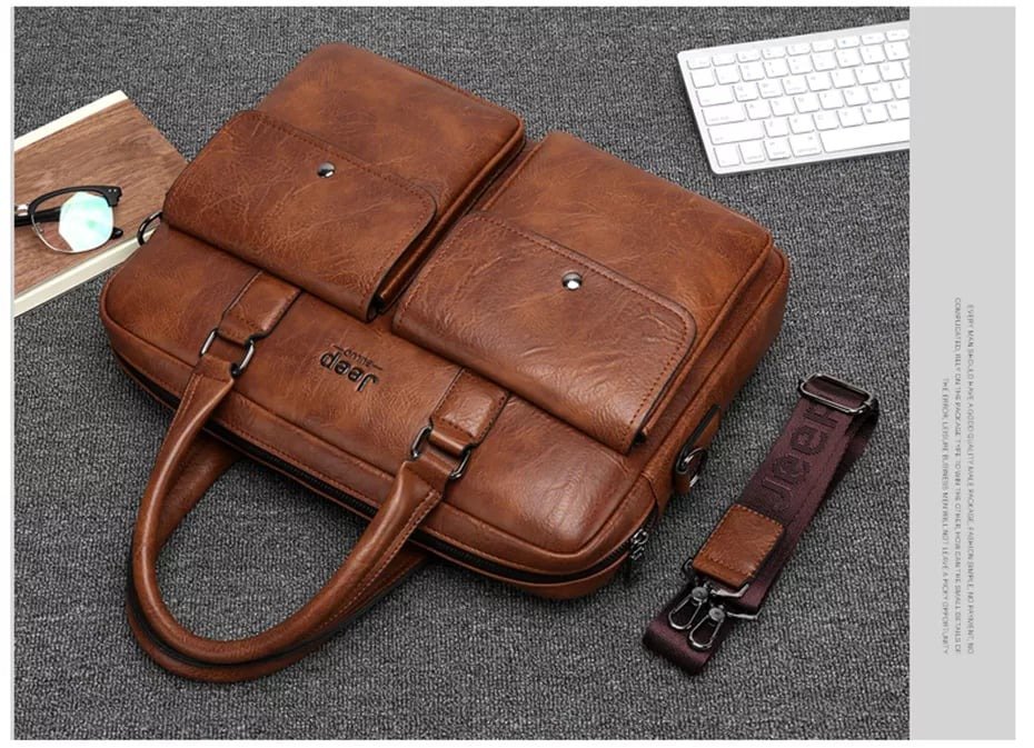 Leather pouch made from high quality materials which fits work with multiple pockets and laptop fits
