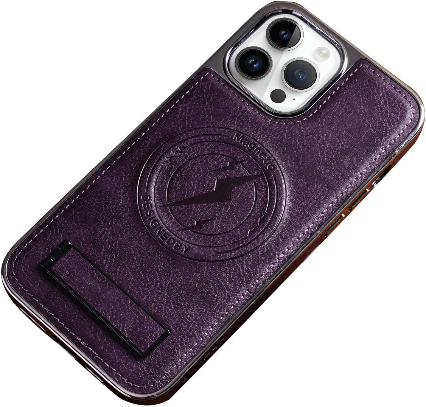 Magnetic Wireless Charging Kickstand Leather Case for iPhone Series Invisible Bracket Skin Feeling Slim Cover