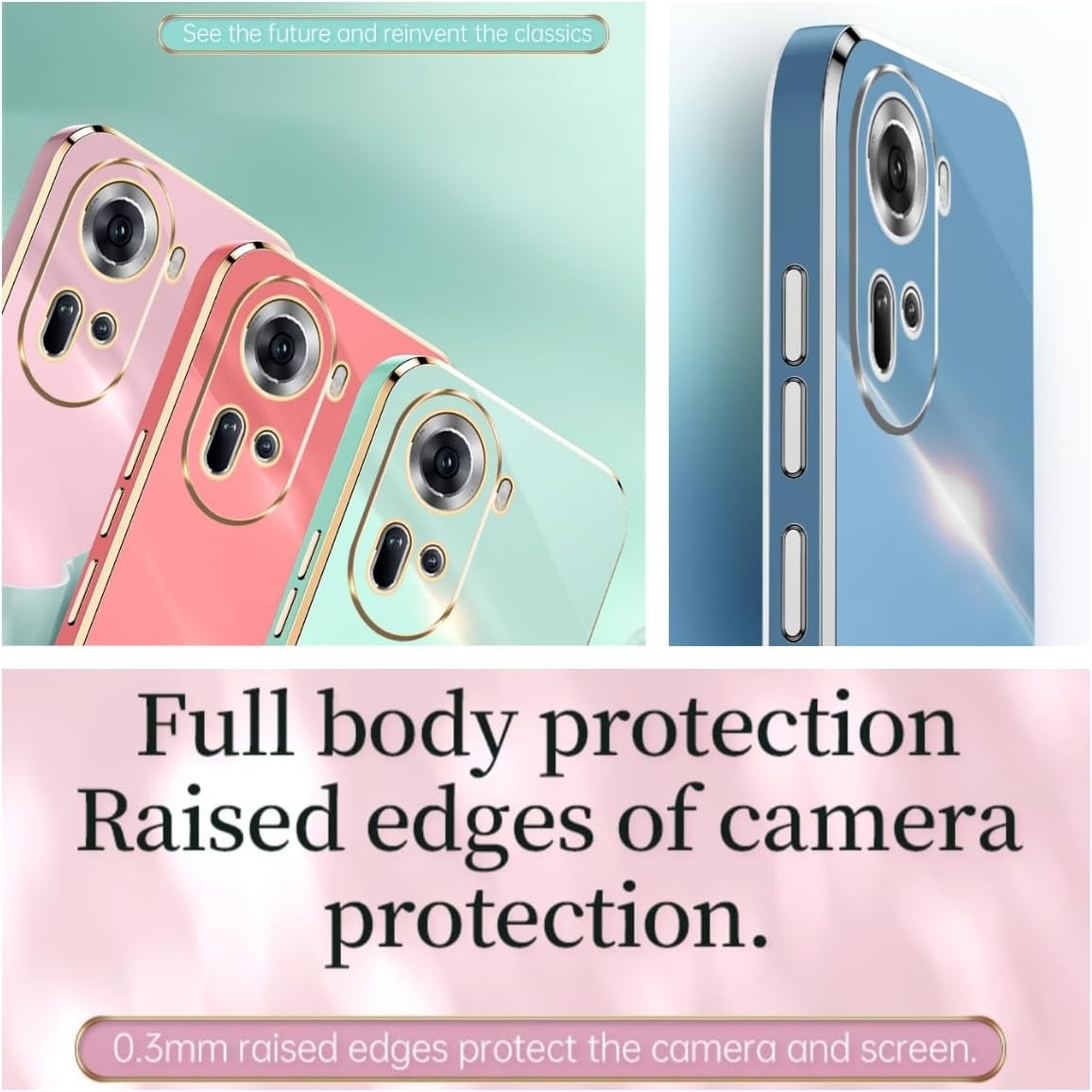 Comprehensive Protection: The front of the OPPO Reno 11 5G case is raised to prevent screen wear and scratches; the back of the case is 0.3mm higher to protect the lens from abrasion.
