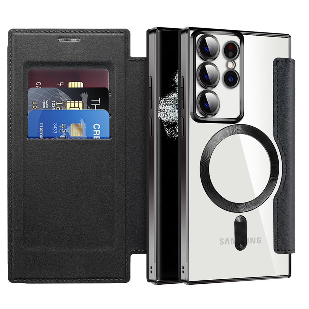 (Card Storage) This notebook style case is made for Samsung Galaxy S23/S22 Ultra with 3 card slots and a free pocket on the inside