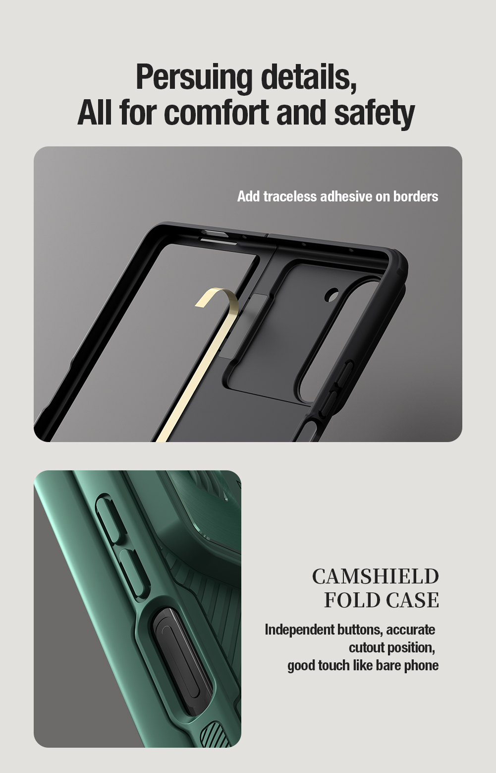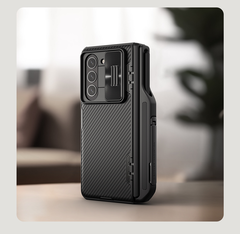 CamShield Fold Case is a functional upgrade under the best-selling classic one, bringing a more convenient experience to you. Adopt assembly and combination design with 180 ° folding freely; By combining soft TPU and hard PC, your phone can obtain 360 ° full protection; Lens sliding cover is made of dazzling metal, which combines exquisiteness and protection; A detachable stand design,free your hands from phone; Spray rubber oil on the surface processed a three-dimensional classic texture, providing a refreshing and comfortable touch.