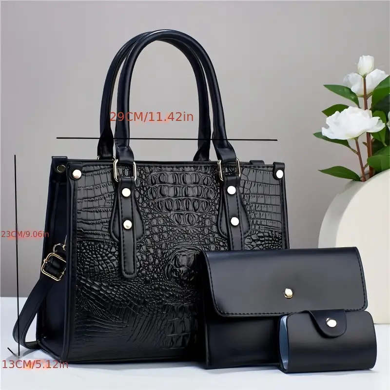 3Pcs Trendy Crocodile Pattern Tote Bag Set
